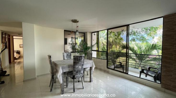 Apartamento de 90 m2 ubicado en el Edificio Santa Elena, Sector Altos de Santa Elena de la ciudad de Ibagué. Tercer piso (SIN ASCENSOR). Amplio, iluminado con una hermosa vista. Consta de sala-comedor con balcón, cocina integral, tres habitaciones cada una con closet, baño social y baño privado con divisiones en vidrio, estudio con baño, parqueadero cubierto y depósito. Excelente estado, closet en madera, calentador a gas,pisos en porcelanato. Valor administración $480.000. Cerca de rutas de transporte, Universidad del Tolima, centros comerciales, parques, supermercados. Estrato 4. El conjunto posee piscina y salón de reuniones. Ambiente acogedor, tranquilo y rodeado de mucha naturaleza.